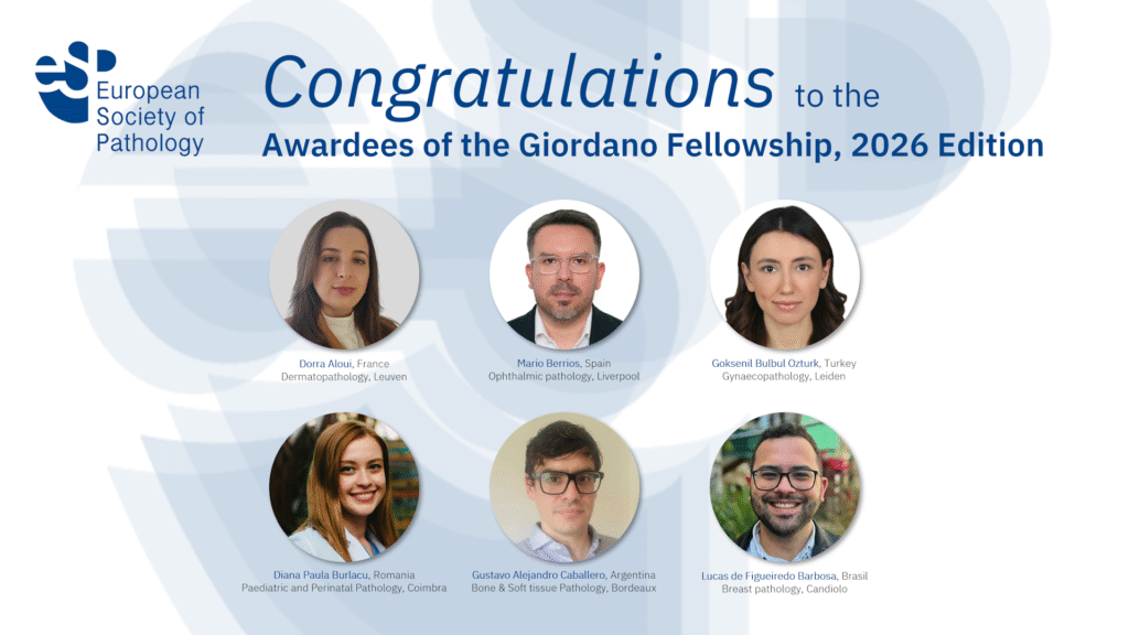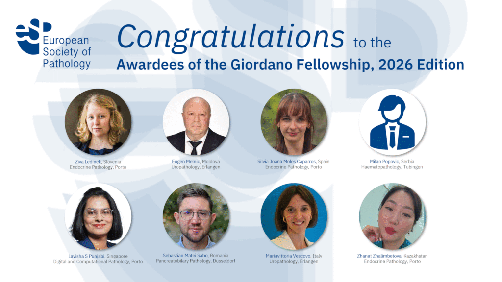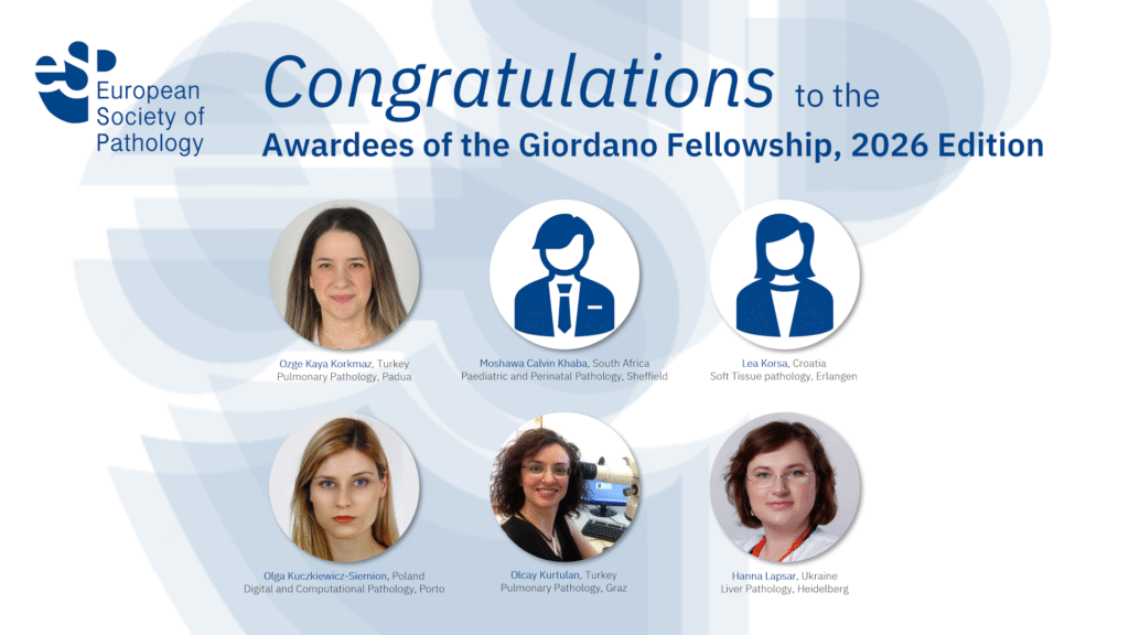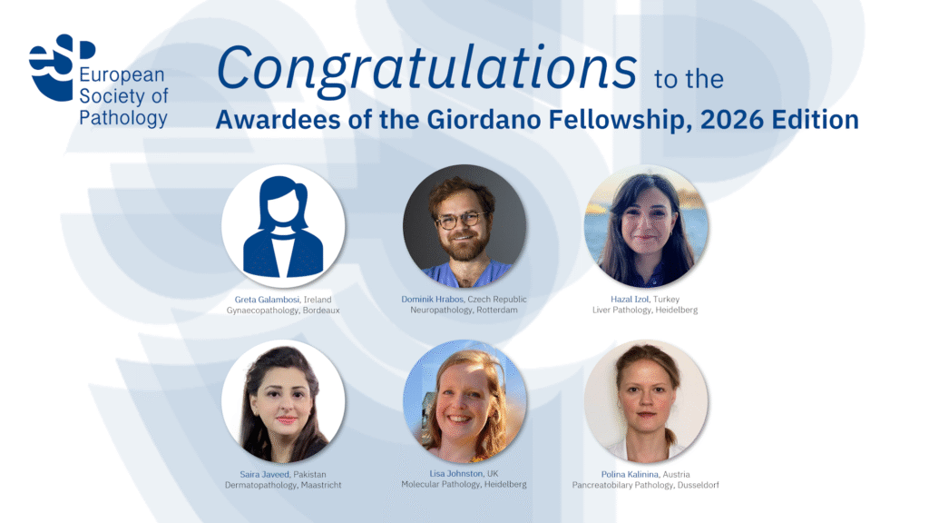 The ESP Giordano Fellowship was initiated in 2015. It encompasses a programme for the advanced training in pathology supported by the European Society of Pathology (ESP). The programme follows ESP’s vision for excellence in Pathology for optimal patient care.