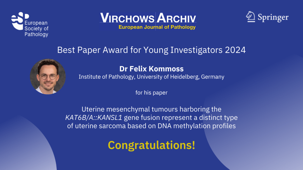 For this reason ESP has launched the annual “Virchows Archiv Best Paper Award for Young Investigators” in 2024. The winning paper/investigator will be selected after evaluation by the Journal Award Committee, chaired by the Editor-In-Chief of Virchows Archiv.